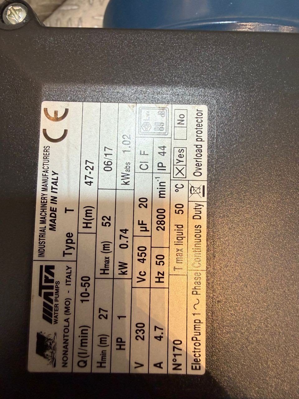 پمپ یک اسب جتی ماترتا (Matra) اورجینال ایتالیا